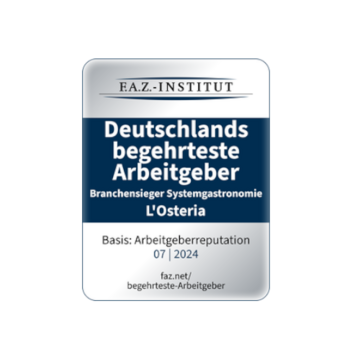 Bei der L'Osteria geben wir jedem eine Chance - auch Quereinsteiger:innen. Selbstverständlich wirst Du eingearbeitet, so dass Du in unseren Restaurants die Abläufe kennst. Wichtig ist nur, dass du italienischen Essen liebst und gerne Gastgeber bist.